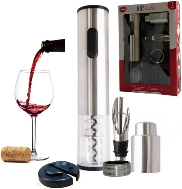 Kit de Acessórios Para Vinho Aço Inox Com Abridor Elétrico 5 Peças
