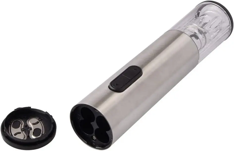 Modo de usar: 1- Gire para abrir a tampa e instale as 4 pilhas aa de acordo com os sinais + e – 2- Use o cortador de lacre para retirar o lacre do vinho 3- Alinhe o abridor de garrafas verticalmente, pressione o botão de baixo e a rolha sairá automaticamente após cerca de 6 segundos 4- Depois de retirar a rolha, pressione o botão de cima para retirar a rolha do saca-rolha. Material: aço e plástico abs Contém 1 kit com 5 peças obs: pilhas nâo inclusas no kit